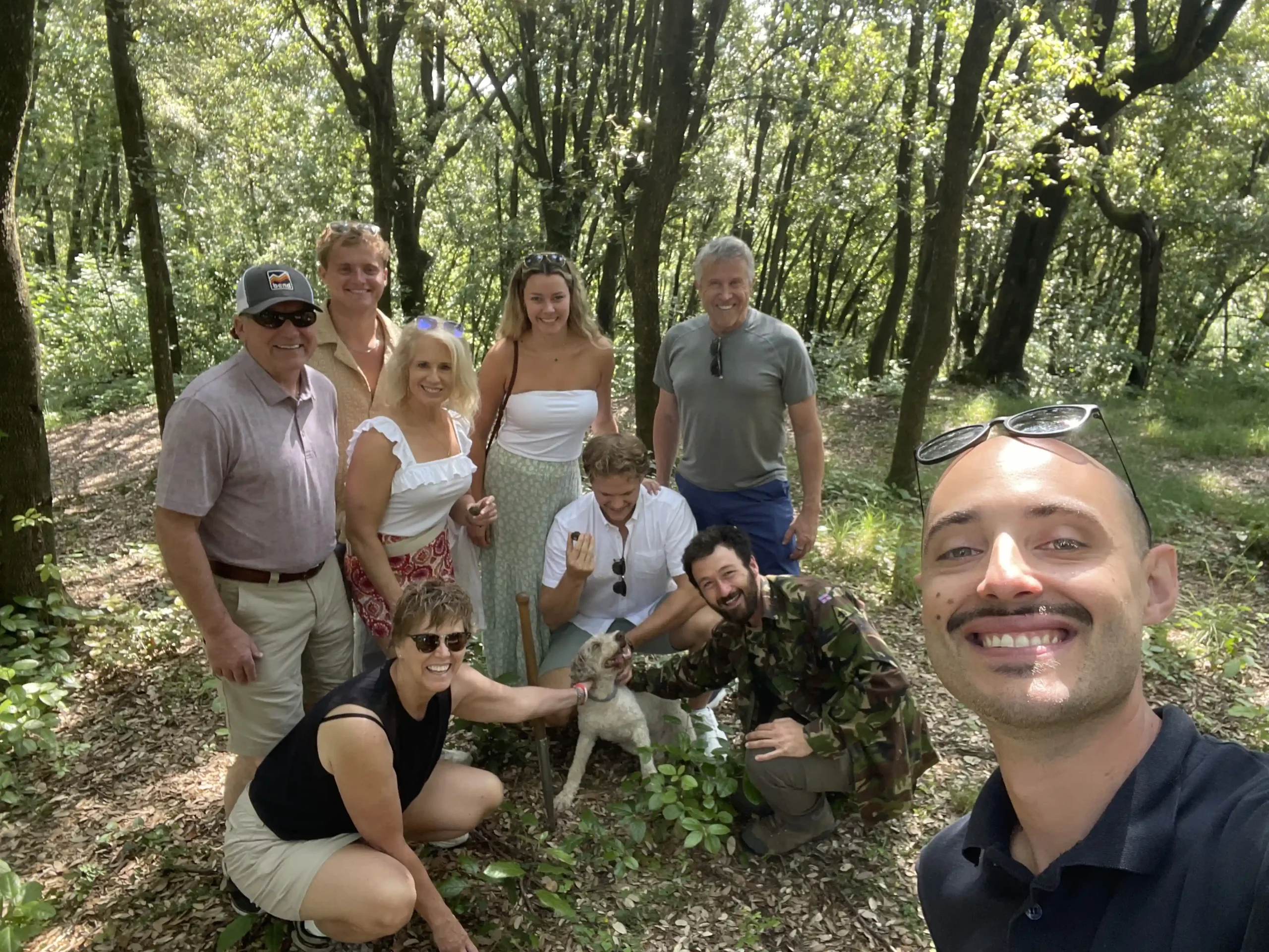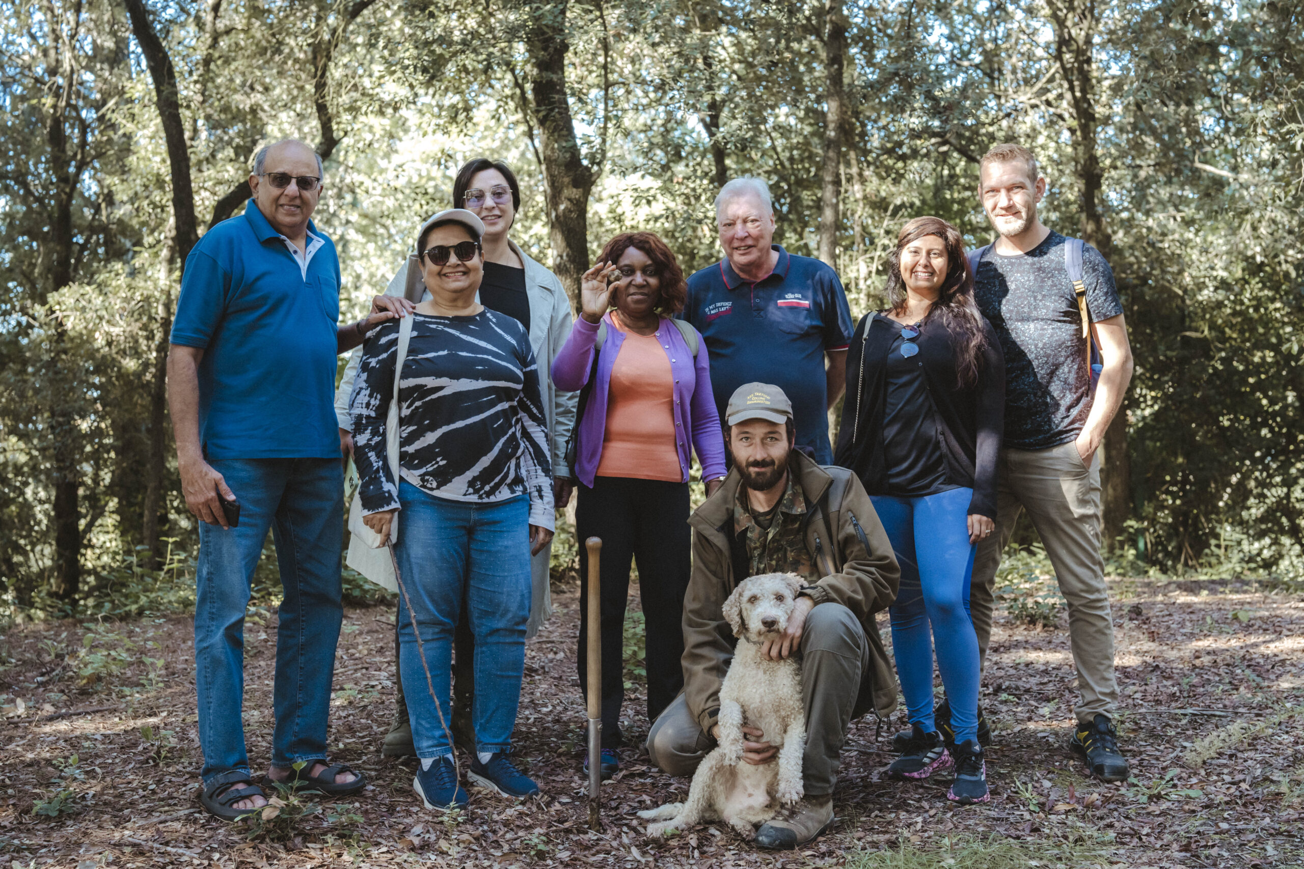 We keep groups intimate with 2-8 people maximum. This ensures everyone receives personalized attention and can fully engage with the truffle hunting and wine tasting experiences.